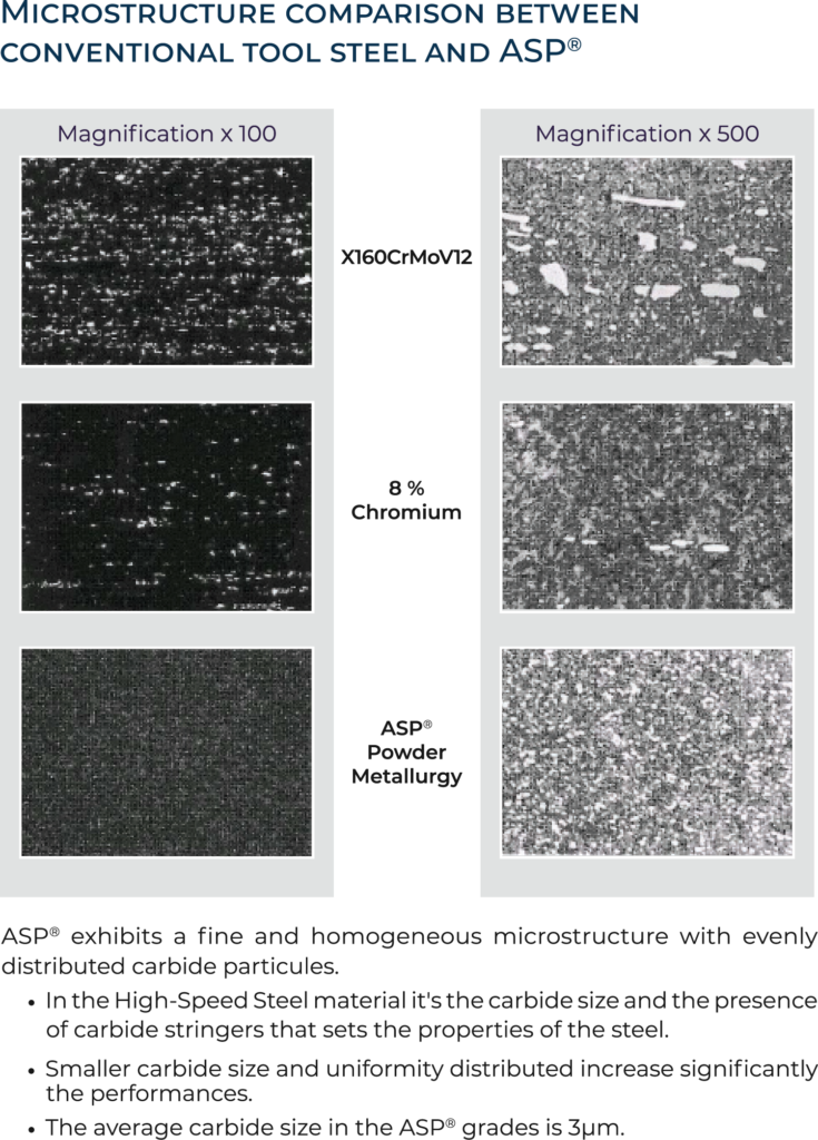 Powder Metallurgy is a core technology at Erasteel with more than 50 years of experience. Based on its knowhow, Erasteel developed: ASP® Powder Metallurgy High-Speed Steel, for cutting tools, cold work tools, saws & knives, automotive components and wear resistant components.