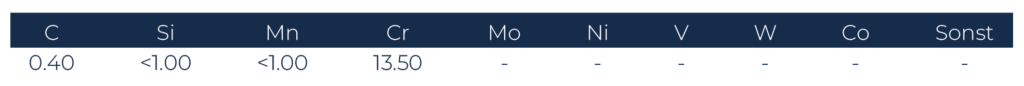 Corrosion-resistant mould steel, highest cleanliness and good polishability, good machinability, low distortion through hardening steel, high hardenability, high wear resistance.